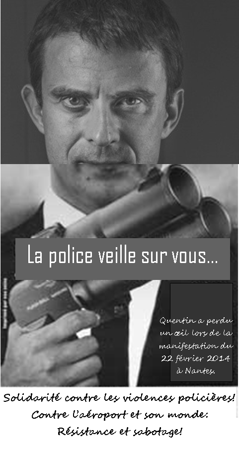 Vidéo a diffuser : BAC Bloc - La farce de l’ordre - Nantes 22-02-2014 - Dans le bocage, comme ailleurs, résistance et sabotage - Lettre ouverte du mouvement armé au préfet de Loire atlantique, M. Christian de Lavernée.