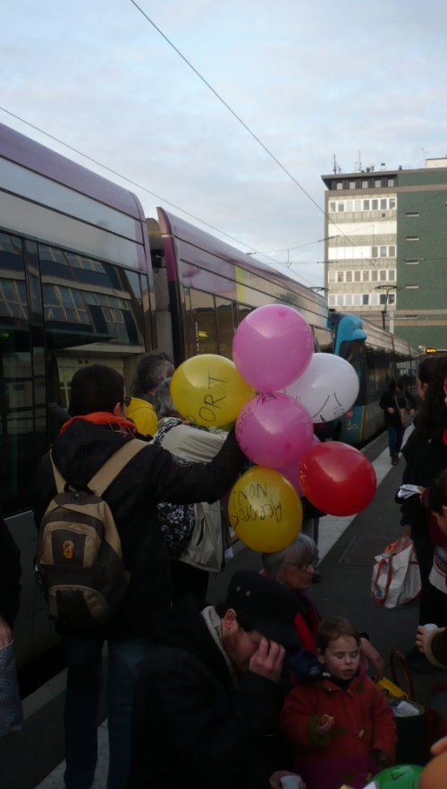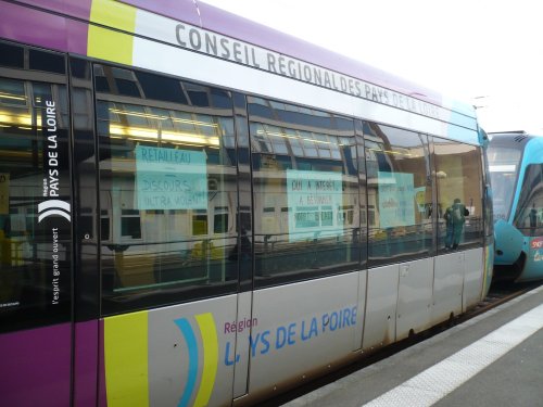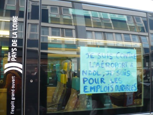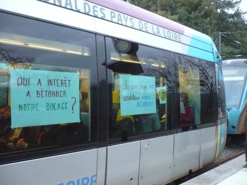 Dans une ambiance familiale, ils ont redécoré le tramtrain avec des affiches et offrent le petit déjeuner aux voyageurs, les invitant à rejoindre la manifestation du 27 février ainsi que les rassemblements de soutien pour les procès du 23 et 24 février qui auront lieu à Nantes. Voir le communiqué ici