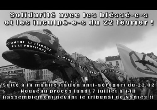 Lundi 7 juillet rassemblement devant la TGI à nantes en solidarité avec les bléssé-e-s & inculpé-e-s de la manifestation du 22 février.