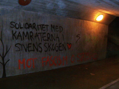 "Solidaritet med kamraterna i Sivensskogen. Mot fascism och statens våld"/"Solidarité avec les camarades a la foret de Sivens. Contre le fascisme et la violence de l’etat"
