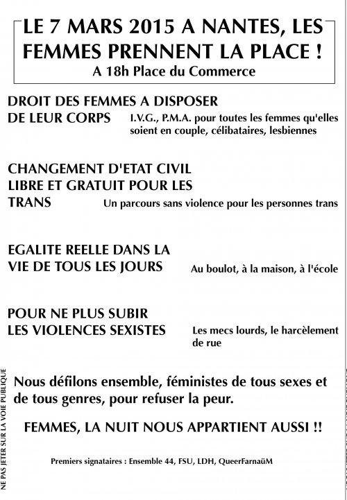 [Nantes] Manifestation 7 mars (pour le 8 mars, journée des femmes)