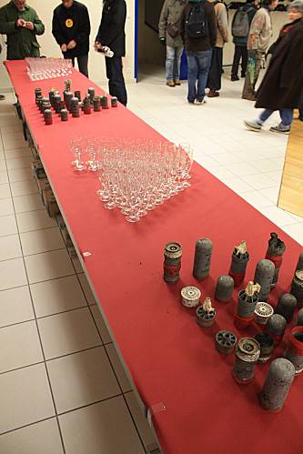 Au même moment étaient distribuées au public entrant des cartes de vœux pour l’année 2013, nous souhaitant à toutes et tous la fin des grands projets inutiles (inutiles ? pas pour tout le monde en tout cas) et nuisibles. A 20h30, le happening de Vinci-Cie a été rejoué, cette fois dans le bar la Bobine.