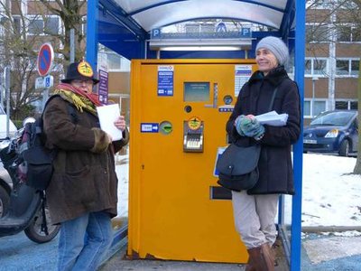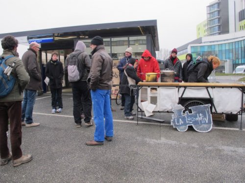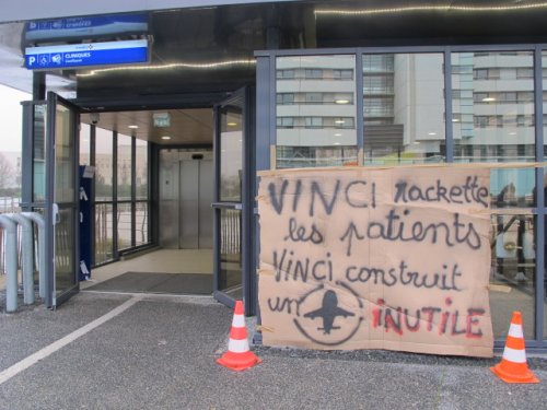 Voici des petites photos de l’action contre Vinci organisé par le collectif Anti-aéroport de Rezé (Sud Loire). Lieu : parking Vinci des nouvelles cliniques nantaises, Sud Loire, quartier Pont Rousseau. Action : L’objectif était de faire parking gratuit... ca n’a pas marché : on a eu quelques difficultés (présence des flics, manque de monde) du coup on s’est contenté de bloquer l’entrée, de distribuer de l’info et d’offrir de la soupe chaude (grâce aux amis de la Locomotive, une cuisine mobile ). Remarques : on prend nos marques mais on ne lâche rien !