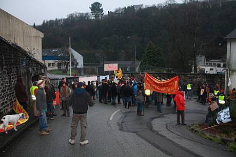 Le cortège réuni à la gare de Pont-de-Buis, ce vendredi après-midi, pour protester contre le projet d’aéroport à Notre-Dame-des-Landes (Loire-Atlantique) a pris la direction de l’entreprise Nobel Sport, vers 16 h 45.