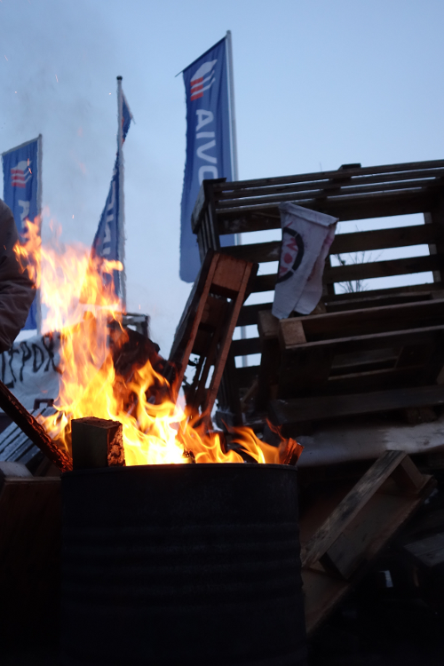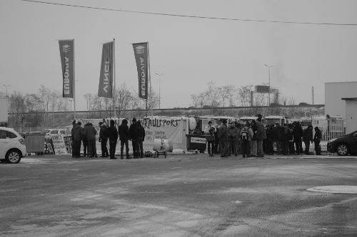 Le blocage s’est déroulé sans encombre, permettant d’informer les employé-e-s d’Eurovia sur le projet d’aéroport. La rencontre a été cordiale et nous a permis de partager quelques mots autour de croissants et café