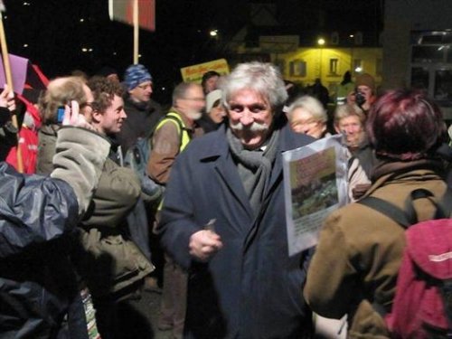 Une fois le "débat" achevé, déploiement de la banderole (celle des vœux) et distribution de tracts, avec de très bon retours (Auxiette se faisant même aborder sur la question de l’aéroport pas des personnes inconnues du collectif).