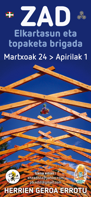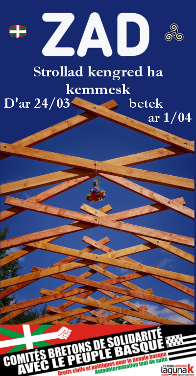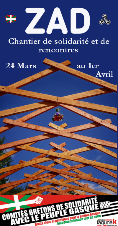 Répondant à l’appel commun lancé pour donner un coup de main à cette construction et connaître la situation et les perspectives de la ZAD, une nouvelle brigade est en préparation pour la dernière semaine de mars 2018. Des collectifs bretons solidaires de NDDL se joindront aux Basques et aux habitant-e-s de la ZAD. Tout au long de cette semaine, des rencontres, conférences et fêtes seront organisées à la Wardine, autour notamment des questions basque et bretonne, leurs histoires, leurs langues, leurs luttes... En Bretagne, la victoire contre l’aéroport n’est qu’une première étape. En plus de la lutte menée par la trentaine de collectifs de soutien à la lutte de Notre-Dame des Landes en Bretagne, des dizaines de collectifs sont en lutte contre des projets destructeurs : contre une centrale à gaz à Landivisiau, une mine d’or dans les Monts d’Arrée, contre l’extraction de sable en baie de Lannion, contre les mines, encore, dans le Trégor, contre une rocade dans la vallée du Restic au nord de Brest, et tant d’autres. C’est de toutes ces luttes, mais aussi des luttes linguistique, culturelle, sociale, féministe... que l’Ambazada doit se faire l’écho. Concernant le Pays Basque, cela fait maintenant deux ans que divers collectifs sont en lien étroit avec la ZAD. Un échange des pratiques et des pensées a ouvert les un-e-s et les autres sur des réalités et des manières d’agir. Tout en découvrant un lieu gorgé d’autogestions et de complémentarités, les Basques ont voulu, à leur tour, porter la voix des peuples niés par les Etats-nations dominants. Le camp autogéré, les rencontres intergalactiques et le chantier collectif Ambazada d’août dernier ont permis de rencontrer des dynamiques d’autres lieux encore, et cet enrichissement mutuel et pluriel va continuer de plus belle.