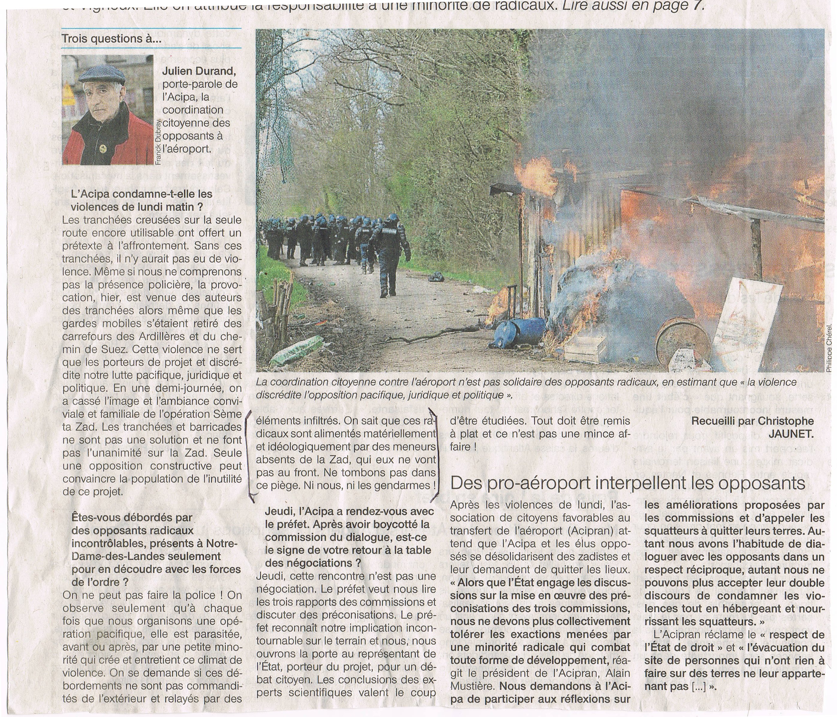 [2] Ouest France du 17 avril 2013, La lutte anti-aéroport face au piège de la violence