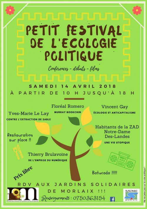 Nous sommes trois étudiants de BTS Gestion et Protection de la Nature au lycée de Suscinio à Morlaix (29) qui organisons un festival sur l’écologie politique.