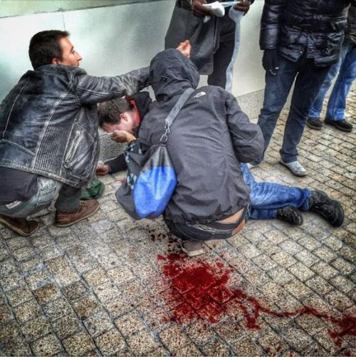 Y a eu plusieurs blessés durant l’après midi : grenade de désencerclement reçue en plein visage, flash ball dans le front tiré à bout portant, sans compter les nombreux malaises provoqué par leur gaz.