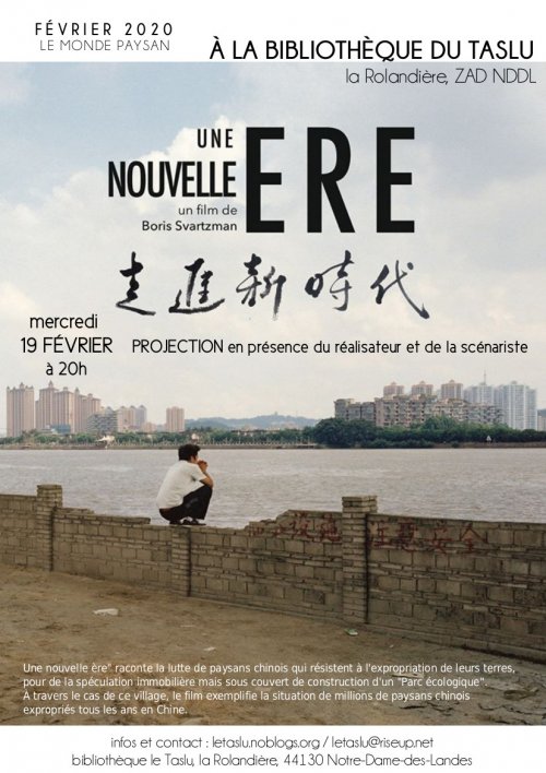 "Une nouvelle ère" raconte la lutte de paysans chinois qui résistent à l’expropriation de leurs terres, pour de la spéculation immobilière mais sous couvert de construction d’un "Parc écologique". A travers le cas de ce village, le film exemplifie la situation de millions de paysans chinois expropriés tous les ans en Chine.