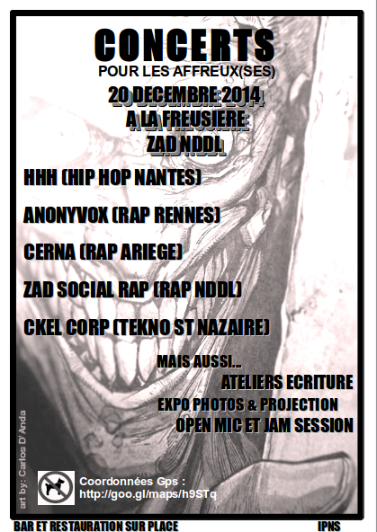 Aujourhui a la freuziere : Concerts, expo, scène ouverte, graff... organisé par le groupe de ZAD Social RAP - https://soundcloud.com/zadsocialrap/