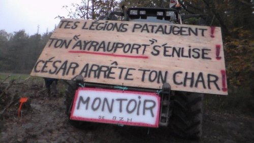 Par ici la lute continue dans le temps qui viennent : ce week-end et la semaine prochaine pour continuer la reconstruction sur le terrain occupé aujourd’hui, dans la forêt de Rohanne et ailleurs ; le week-end prochain pour la manifestation mensuelle contre l’aéroport et son monde à Nantes samedi 24 ; et dans les mois qui viennent pour empêcher la destruction de la forêt de Rohanne et les premiers traveaux du barreau routier prévus dans les mois qui viennent - des rendez-vous qui seront relayés sur le site web zad.nadir.org.