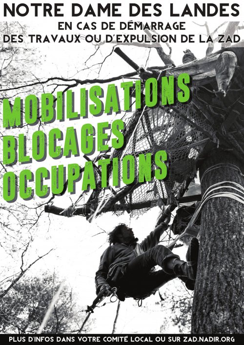 On a mis a jour l’appel en cas d’attaque, d’expulsion ou début de travaux sur la ZAD avec des affiche et tracts pour les distribuer : s’ils reviennent, on résistera plus fort encore !