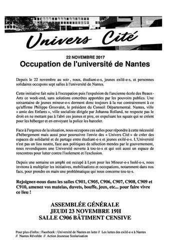 Après l’expulsion violente des Beaux-Arts dimanche dernier, 7 salles de la fac de Nantes sont actuellement occupées pour héberger des mineur.e.s isolé.es.