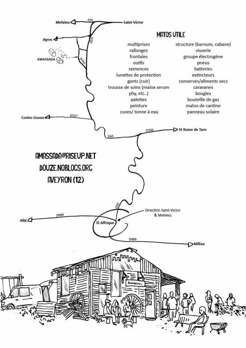 Alors cette fête du vent #4 se voudrait être une pièce parmi cette réappropriation du présent, de nos vies, des espaces que nous habitons. Ici aussi on sème sa ZAD... Le samedi 22 sera l’occasion d’une grande marche-convoi de Saint Affrique vers l’Amassada, suivi d’une assemblée de lutte. Marche dont vous trouverez le texte d’appel ici dessous. Il est important que le plus de personnes, collectifs, assemblées, militant.e.s, organisations, syndicats rellayent et signent cet appel. Le dimanche 23 sera consacré à des discussions sur la numérisation du monde et l’extractivisme, suivies par une assemblée du mouvement. Le programme complet sera envoyé très prochainement ainsi qu’une affiche de l’événement de la Fête du vent#4.