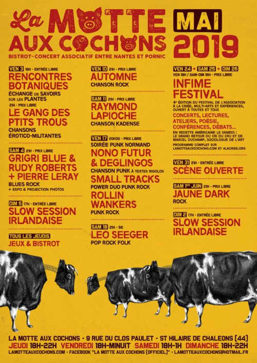 infime festival à la motte aux cochons | 24, 25 et 26 mai, l’ardèche à 30 mn de rezé (train), on est déjà sur l’affiche de la motte (voir ci-dessous). programme définitif en fin de semaine.