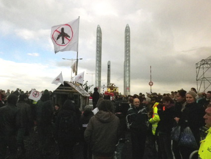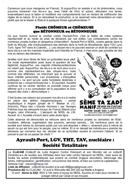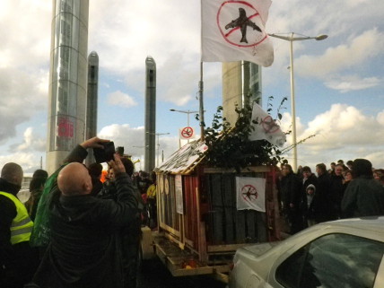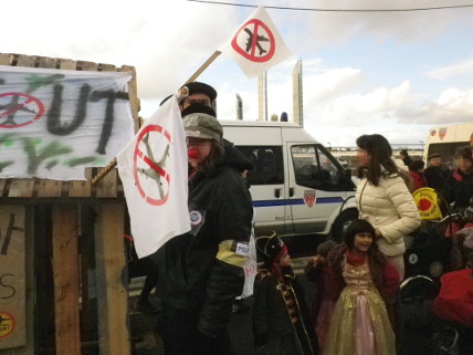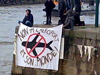 Petites nouvelles de l’action au Ponts-de-Cé (49). La région y organisait sa conférence "Pays de la Loire 2040". On a réussit à chanter deux petites chansons sur la ZAD avant de se faire exclure, plus ou moins de force (arrachage de tracts, poussage de la part de certains nervis du PS). Puis bien sur à la fin, contrôles d’identités par les schtroumpfs sécuritaires et tentatives de faire condamner la violence des Zadistes. Pour l’anecdote, un des flics nous à annoncé que nos chansons étaient le moment le plus intéressant de la soirée et que c’était bien que nous faisions cela ! LA GROSSE BLAGUE !!!
