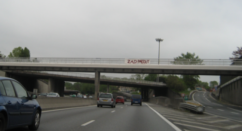 L’action a eu lieu sans encombre, si ce n’est que le périphérique était moins saturé que d’habitude pour cause de vacances scolaires. Certaines décorations ont été repérées et décrochées par les forces du désordre une vingtaine de minutes après avoir été étendues.