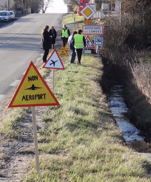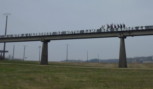 Profitant des vestiges d’un autre projet des années soixante, le comité est allé inscrire sa détermination sur l’antique rail de l’aérotrain qui traverse l’horizon beauceron. Construit depuis plus de quarante ans, la voie de béton préserve la mémoire d’un symbole de cette époque, rendu obsolète par le TGV. Le projet d’aéroport de Notre-Dame-des-Landes fut lui aussi dépassé et plongea dans l’oubli pendant des décennies. Nous estimons que le ranimer aujourd’hui est une aberration, en un siècle qui a plus besoin d’innovation et de solidarités locales que de dépenses d’équipement pharaoniques.