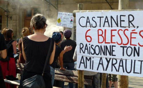 Aujourd’hui (17 avril) on s’est fait un petit rassemblement, une cinquantaine de personnes devant la mairie de Forcalquier, avec des braseros on les a un peu enfumé, on s’est un peu assis sur la route et les 8 gendarmes présents sont restés bien calmes. C’est vrai que dans nos campagnes à nous ils ne sont pas très agressifs les bleus. Castaner le maire de cette charmante bourgade est un grand ami de Ayrault alors on l’interpelle de temps en temps. S’ils vous expulsent on reviendra... Pour l’anecdote, en manifestant on a appris que se tiendrait un rassemblement contre le mariage pour tous deux heures plus tard, du coup on les a attendu hi hi !!!