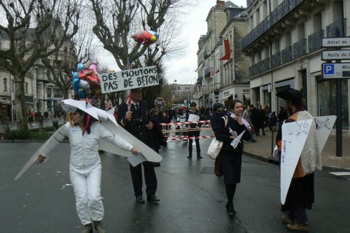 Le comité de soutien de Dordogne a déboulé au carnaval de Périgueux ce dimanche déguisés en avions, commandants de bord (un vrai de vrai à la retraite était présent avec nous), pirate de l’air, hôtesses, Mr Vinci avec porte voix, pancartes, slogans imprimés sur des avions en papier, tracts, chants