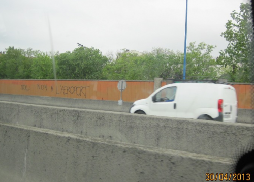 Les voyageurs qui empruntent la ligne de chemin de fer entre Orléans et Paris pourront désormais lire « Non à l’aéroport de Notre Dame des Landes », à hauteur de Chevilly. Dans l’esprit des auteurs du slogan, il faut le prendre comme un encouragement à se déplacer en train qui, bien plus que l’avion, justifierait les investissements publics.
