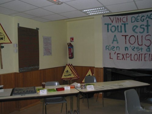 Le collectif a animé une projection-débat sur la lutte à Notre Dame des Landes et contre les GPII en général dans le cadre du « Bazar au Bazacle ». Le caractère autogéré de ces luttes constituait le fil directeur du débat.