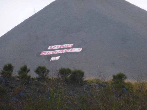 Ce matin, les automobilistes circulant au croisement de la rocade minière et de l’A1 ont eu la surprise de découvrir, fichée sur le terril Sainte-Henriette, une banderole de 20 mètres sur 10 marquée « Vinci, dégage », suivi de l’emblématique avion barré des zadistes de Notre-Dame-des-Landes.