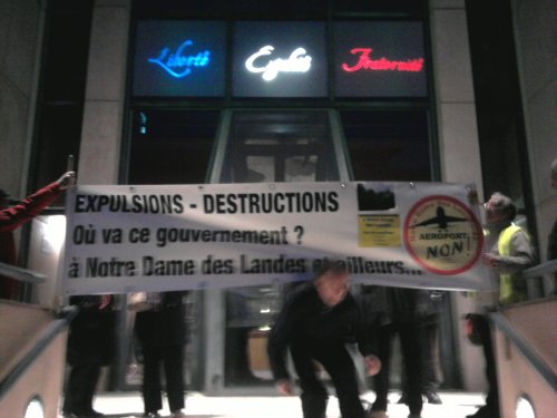 Communiqué suite à l’action d’aujourd’hui (à 17h) contre les bureaux de l’architecte Jacques Ferrier, qui a été choisi pour faire le design et les plans de l’aéroport de Notre Dame des Landes :