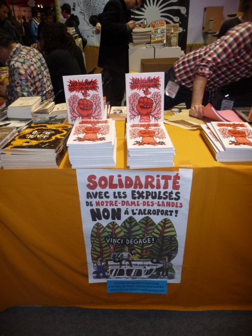 une petite photo en direct du festival de la bd à angouleme vendredi soir à 18 heures vernissage de "détachez vos ceintures" sur le stand d’un des co-éditeurs. le livre est présent sur plusieurs stand très visible avec les affiches que nous avons collées dans tout le chapiteau