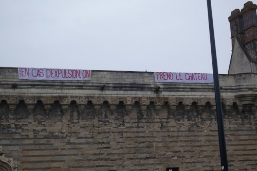 A Nantes entre 150 et 200 personnes se sont rassembler en réponse sur la décision d’expulser les opposantes historique. Que vinci qui dégagera d’ici ! Résistance et sabotage. http://zad.nadir.org/spip.php?article3188
