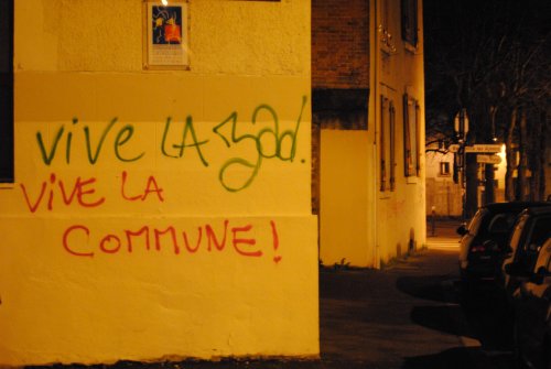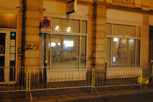 mardi soir,sept camions d’Eurovia, filiale du groupe Vinci -, ont été incendiés en zone sud de Limoges mardi soir, aux alentours de 22h30. il y a en a pour des centaines de milliers de dégats. là encore les messages de solidarité avec la zad -et conte l’Etat d’urgence- sont explicites. Les patrons sont bien sur furieux, ce qui ne peut que nous réjouir.