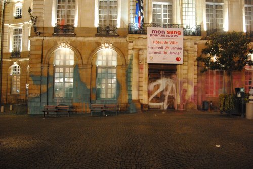 Lundi dernier la mairie de Rennes a été tagguée en bleu blanc rouge (zad, zad, zad) mais malgré l’effort cocardier la mairie n’a pas apprécié !