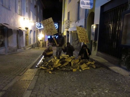 Action de solidarité spontanée après l’annonce du rendu du procès pour expulsion des habitant-e-s historiques de la ZAD. Le cortège à déambulé dans le centre ville de Briançon après avoir bloqué l’entrée de la vieille ville (photo 1). Une barricade imposante à dissuadé les flics de nous intimider (photo 2). La manif fait une pause musicale devant l’hôtel de ville (photo 3) avant de rejoindre la foule amassée devant le bar, place de l’église (photo 4). La déambulation se dissout après une visite surprise au PGHM*, qui n’en menaient pas large (photo 5). Cette mobilisation massive réaffirme la détermination du Briançonnais dans les luttes contre les projets inutiles.