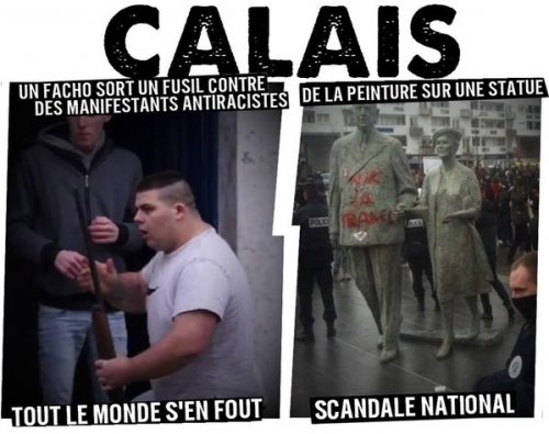 Menaces à Calais de nombreuses de personnes subissent la répression radical d’un état inhumaine et clairement raciste et fasciste. L’article est en anglais, http://earthfirstjournal.org/newswire/2016/01/25/anarchists-face-immediate-trial-alongside-migrants-after-protesters-stormed-port-of-calais/ , se sont les événement des dernier jours ou plusieurs de personnes ont pris un bateau dans une action désespérer pour traverser et rejoindre des familles ou de vivre une autre culture, réalité, ou des camarades de noborder sont accuser de agiter les personnes qui vivent dans des conditions inhumaine a prendre se bateau, Des fascos qui leur menacent, au quotidien, avec des armes a feu, la construction de 1500 logements, pour 3-4 fois plus de gens, des stratégies pour créer encore plus des tentions, pour légitimer encore plus la répression inhumaine et sécurité nationaliste. https://calaismigrantsolidarity.wordpress.com/category/news/
