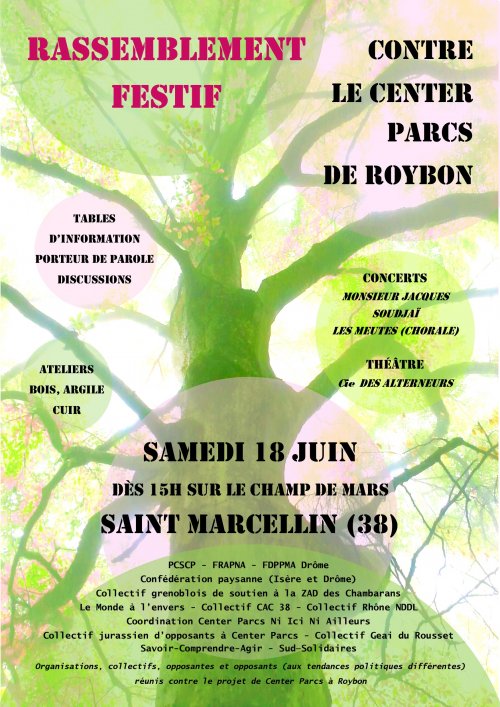 Accueil > Camarades de lutte > Autres luttes contre l’aménagement capitaliste du territoire > Rassemblement contre le Center Parc de Roybon
