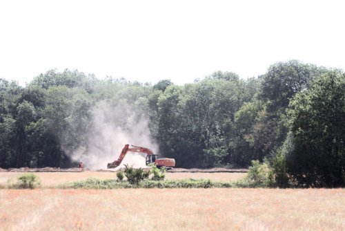 Pour le moment, le Département n’est pas autorisé à débuter les travaux de défrichement du bois de Latingy ; il doit en effet attendre le départ des balbuzards vers d’autres latitudes. Malgré cet interdit et la BalbuCam qui atteste de leur présence, plusieurs engins ont commencé mi-juillet à creuser des tranchées dans un champ attenant au bois, au sud de la D960. L’Office National de la Chasse et de la Faune Sauvage (ONCFS), contacté par Mardiéval, a immédiatement rappelé à l’ordre le Conseil Départemental et les travaux ont été suspendus. Mais pour combien de temps ?