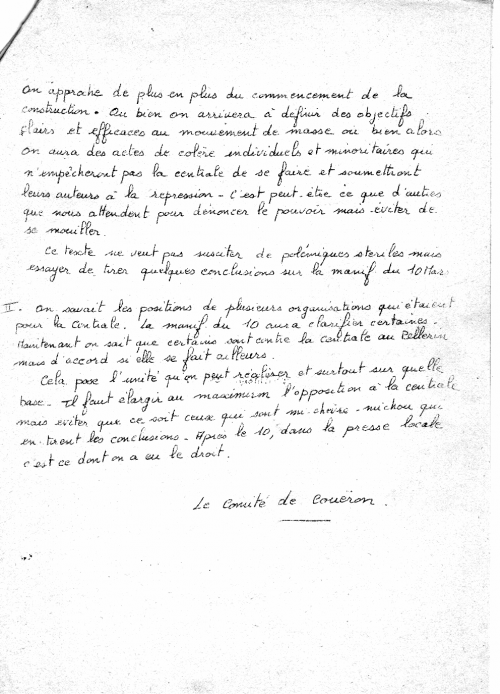Parce qu’elle parait intéressante, on vous transmet ici une lettre écrit après la manif par une des comités de la coordination :