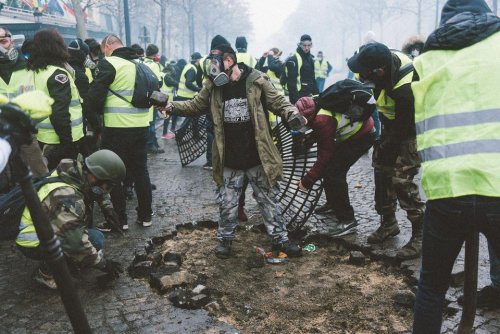 Le samedi 1er décembre a marqué une nouvelle étape de la mobilisation. Alors que l’exécutif faisait le pari d’un affaiblissement, les gilets jaunes ont remonté d’un cran le niveau de la confrontation, déjà bien élevé les semaines précédentes. La manifestation parisienne s’est transformée en une offensive telle qu’on n’en a pas connu depuis bien longtemps. Non seulement les gilets-jaunes étaient plus nombreux, mais ils et elles ont déployé une inventivité particulièrement efficace face à l’encadrement policier. La révolte débordait de toute part et les techniques répressives habituelles – lacrymogènes, grenades, nasses, matraques ou canons à eaux – ne pouvaient pas y faire grand-chose. Des comités d’action s’improvisaient entre deux boutiques de luxe, on traversait des avenues bordées de sapins de Noël enflammés et des tags recouvraient la Place Vendôme. L’attention a tendance à se focaliser sur Paris, mais les récits qui émergent dans d’autres villes, voire des villages, montrent que le phénomène est bien plus large. Si on peut y voir une continuité avec les formes de réappropriations de la violence dans les cortèges, notamment depuis 2016, il faut reconnaitre qu’un cap a été franchi.