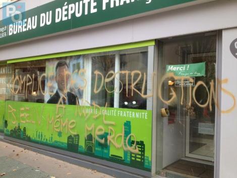 Le bureau parlementaire du député François de Rugy à Nantes a été" vandalisé" cette nuit, annonce Europe Ecologie-Les Verts (EELV) qui y voit un lien avec le combat des écologistes contre le projet d’aéroport Notre-Dame-des-Landes.