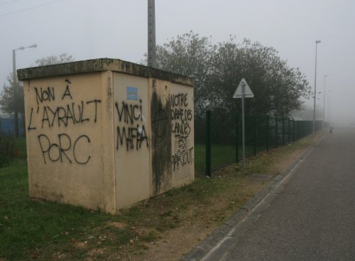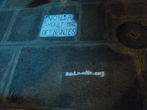 A Ambert on peut voir un t ag sur la facade en face de la pompe à essence et qui dit "Non à l’aéroport, Le monde entier est une zone à défendre". Ambert est une ville du puy de dôme de 7000 habitants. bon courage pour celles et ceux qui sont sur les barricades et dans les maisons occupées.