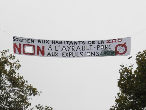 Alors que tous les jours la préfecture Nantaise dépense des milliers d’euros (en vain) pour tenter de reprendre le contrôle du bocage de Notre Dame des Landes, un peu partout en France des actions sont organisées pour soutenir la lutte contre les expulsions sur le futur site de l’aéroport.