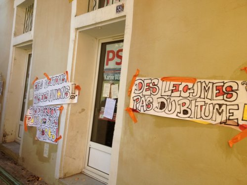 Voici une CARTE GEOGRAPHIQUE qui tente de récapituler toutes les actions. Deux autres cartes (moins complètes) avec les actes de vandalisme contre les permanences du PS et une carte des actions.