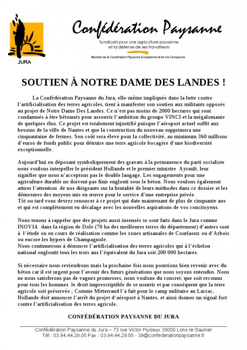 EN SOLIDARITE AVEC LES CAMARADES EN LUTTE CONTRE LE PROJET DE NOUVEL AEROPORT A NOTRE-DAME-DES-LANDES
