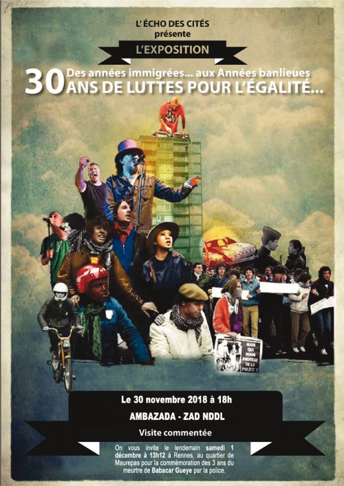 Invitation à venir à l’AMBAZADA le vendredi 30 novembre 2018 découvrir l’exposition "Des années immigrées... aux années banlieues, 30 ans de luttes pour l’égalité" proposée par l’association l’Écho des cités.