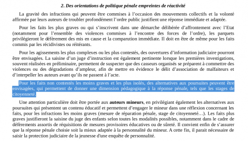 Pour bien commencer la semaine, on conseille de se renseigner un peu sur ses droits (liés à la circulaire du 20 septembre portant sur les les infractions commises à l’occasion des manifestations et autres mouvements collectifs), histoire de pas être pris.es au dépourvu aux prochaines manifs. L’état, à bout d’idées et d’argumentaires crédibles, renforce toujours un peu plus ses possibilités de répression, espérant sans doute qu’en criminalisant nos mouvements on perdrait du soutien. Quelle naïveté ! Nous on a presque hâte aux "stages de citoyenneté"...